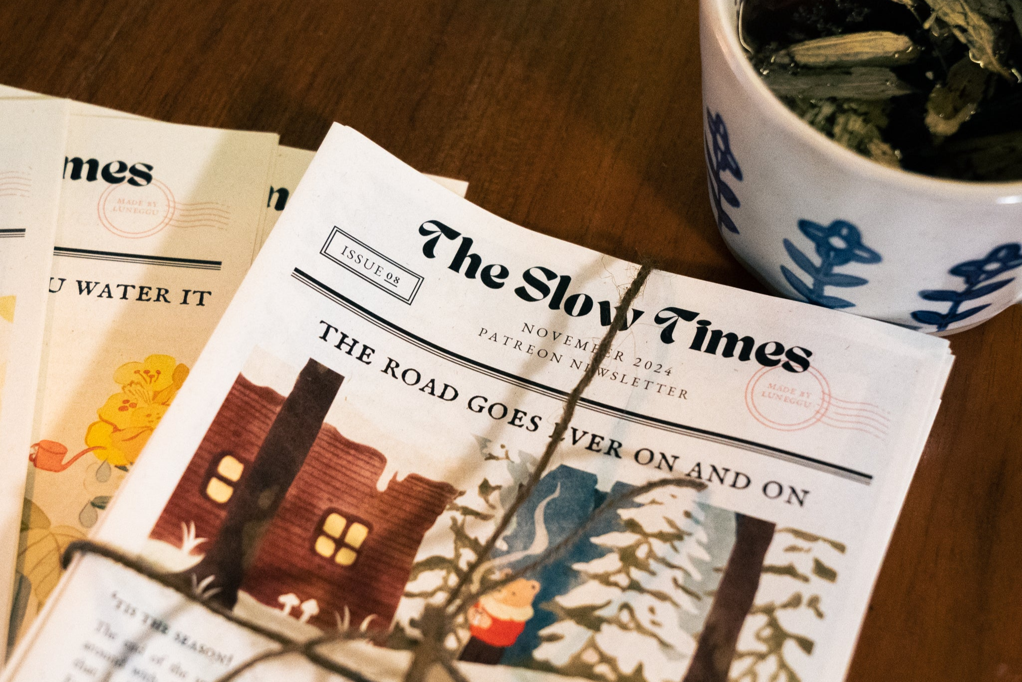 The Slow Times is an 8-page A5-sized physical newsletter that I write and illustrate, previously a monthly reward on Patreon, now an independent subscription service on The Slow Nook.