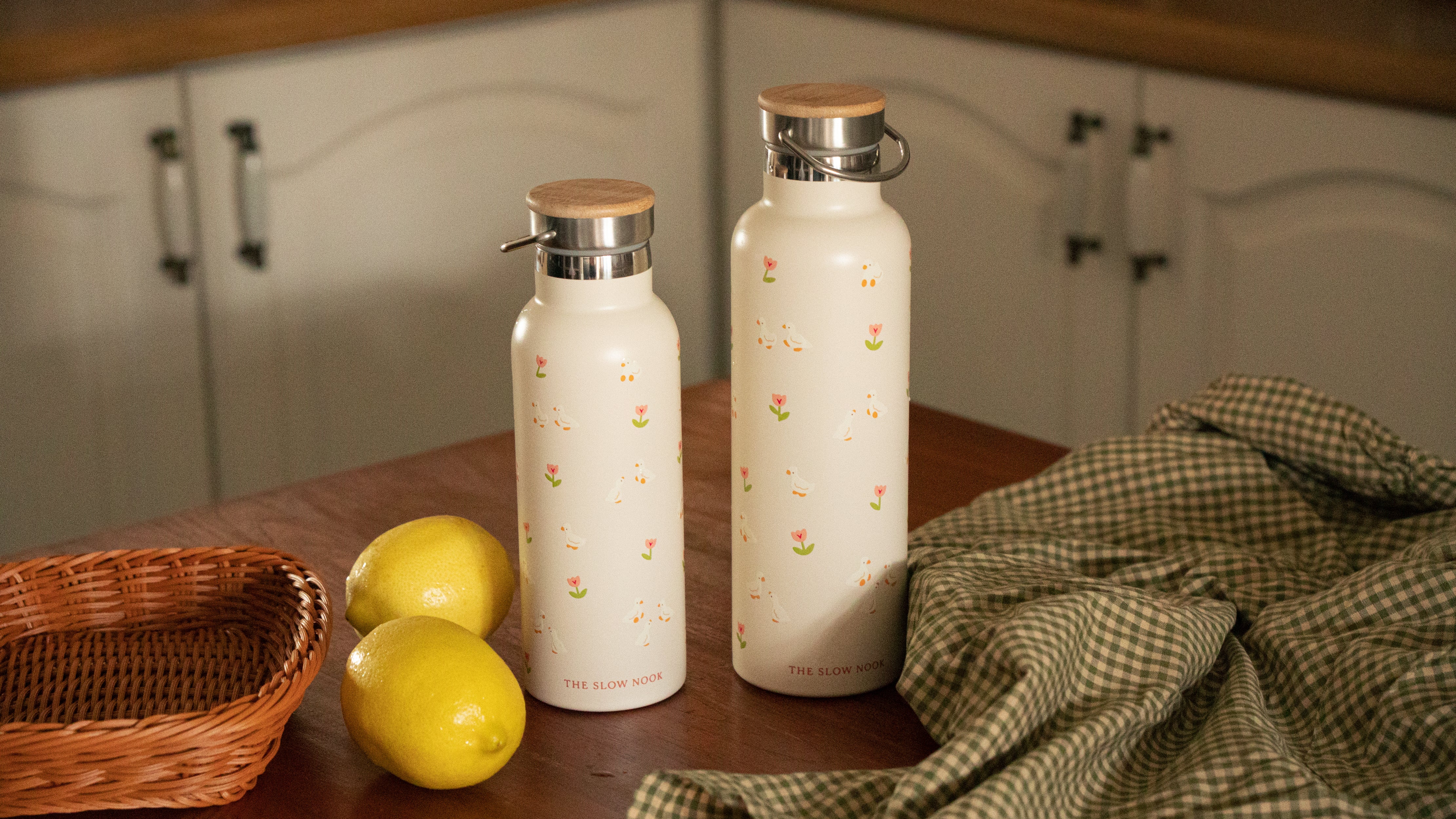 Stay hydrated with these insulated, stainless-steel bottles. Whether you are carrying it on the go or keeping it by your desk, this BPA-free bottle keeps your sip just as you intend for it up to 12 hours. The Wandering Ducks Insulated Bottles are illustrated and designed by Luna.